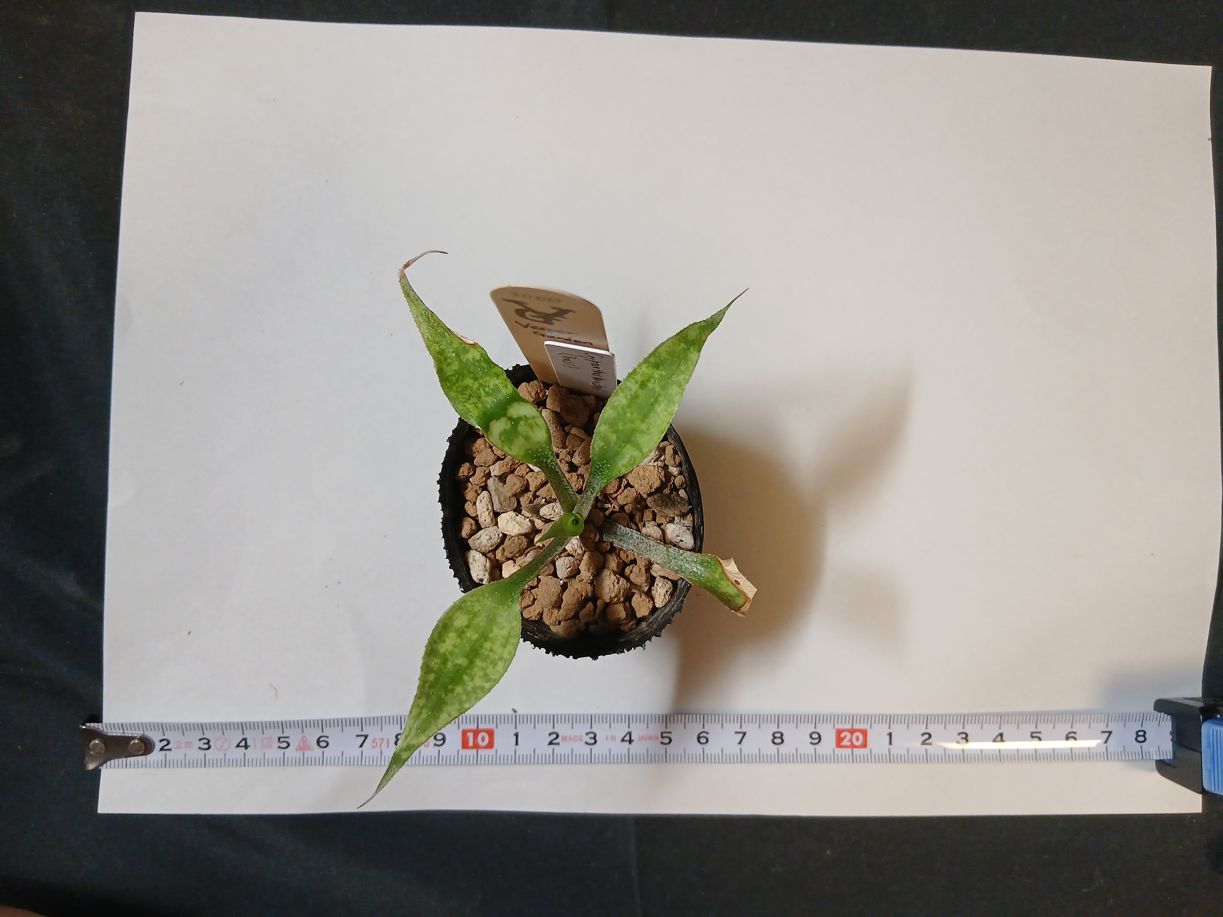 スプーンのような大理石模様の葉をつける、大変観賞価値の高いクリプタンサスです。花は白色。